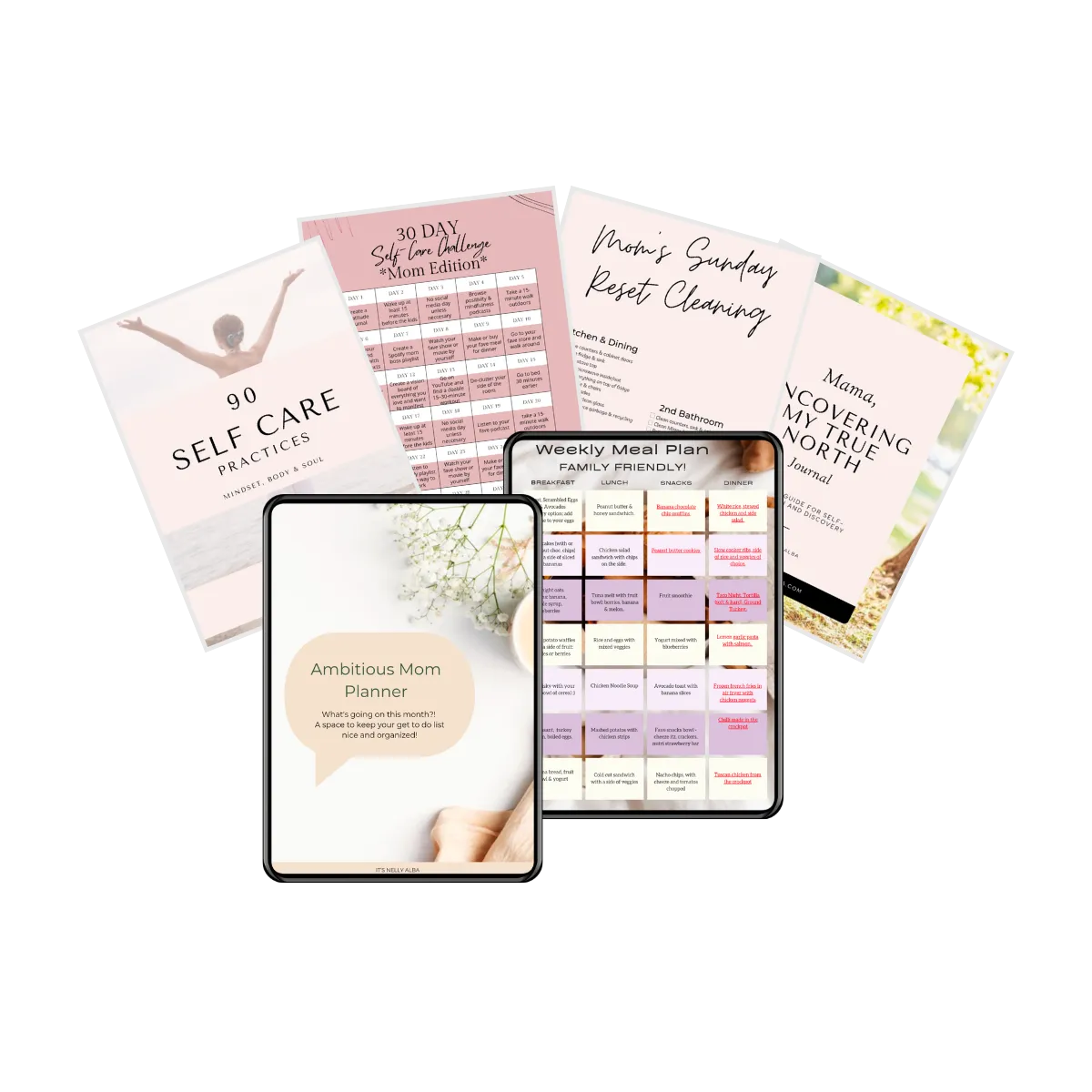 • 64-page mom planner with daily and monthly pages, workout and habit trackers + so much more